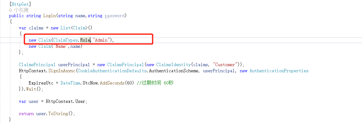 | ExpiresUtc = DateTime.UtcNow.AddSeconds (60) // 过期时间 60 秒 |