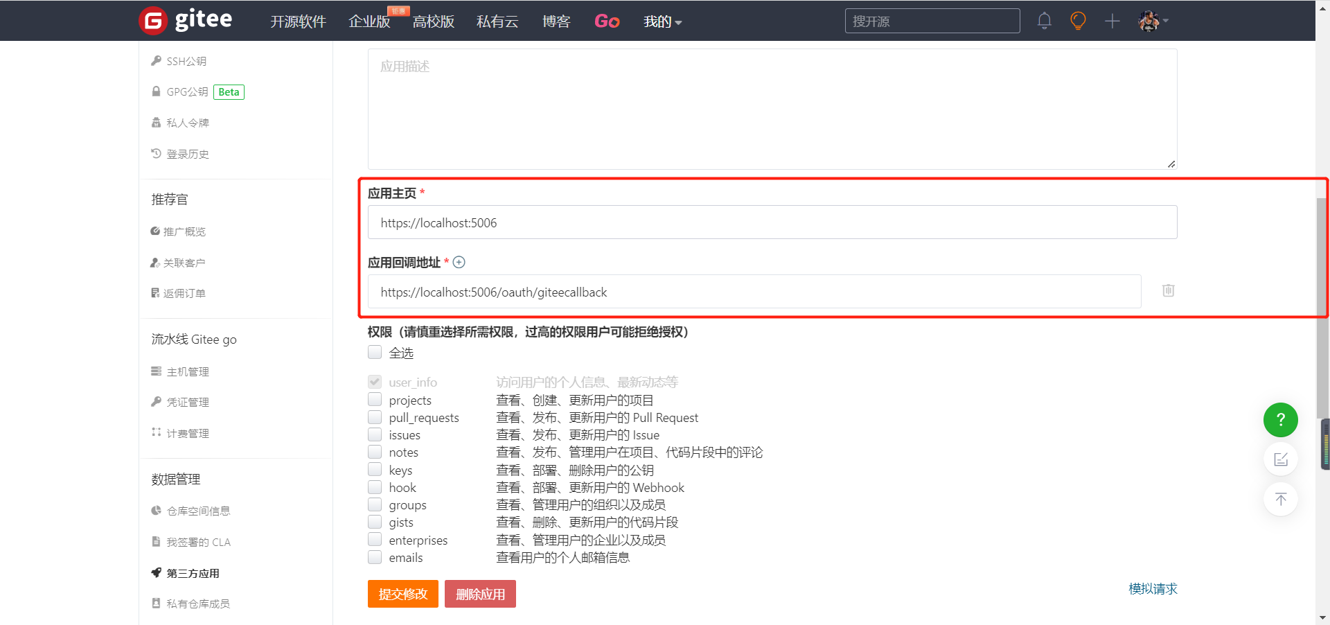 # 使用 gitee 进行第三方登录